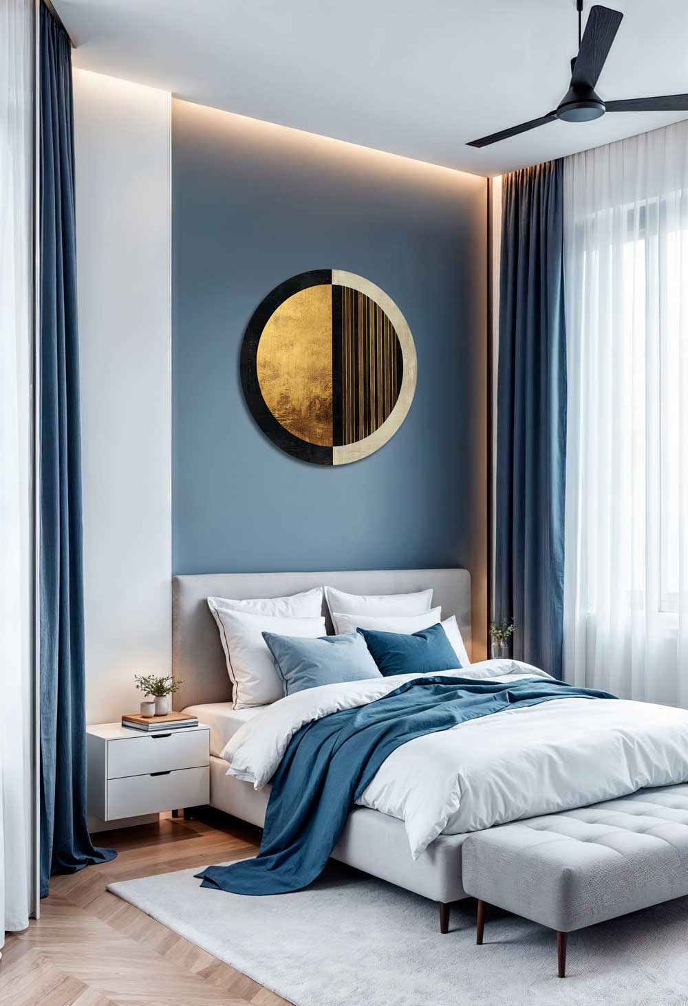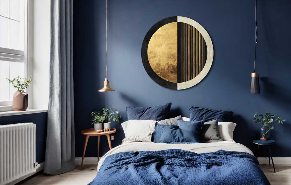 Center of Calm – a minimalist artwork where clean geometric balance meets golden detail. Printed on white aluminum, this round piece catches light beautifully, while varnish highlights add a striking, refined touch. A perfect visual symbol of harmony and serenity.