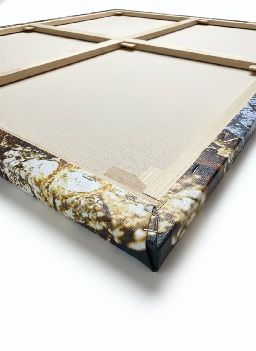 Mūsų drobės paveikslai yra paruošti kabinti ir profesionaliai įtempti ant tvirto medinio porėmo. Kiekvienas spaudinys turi integruotą kabinimo sistemą gale, todėl lengva iš karto eksponuoti jūsų meno kūrinį.