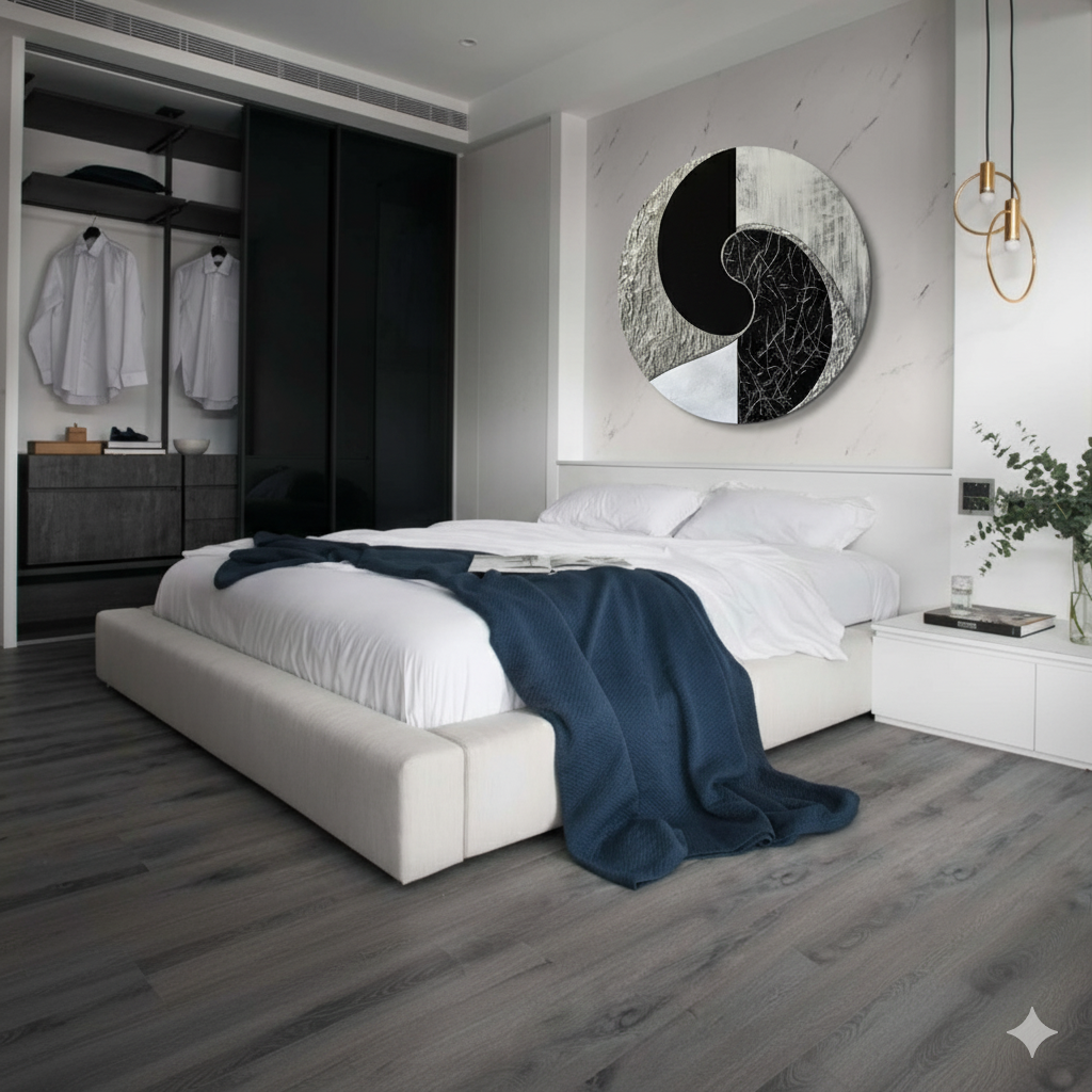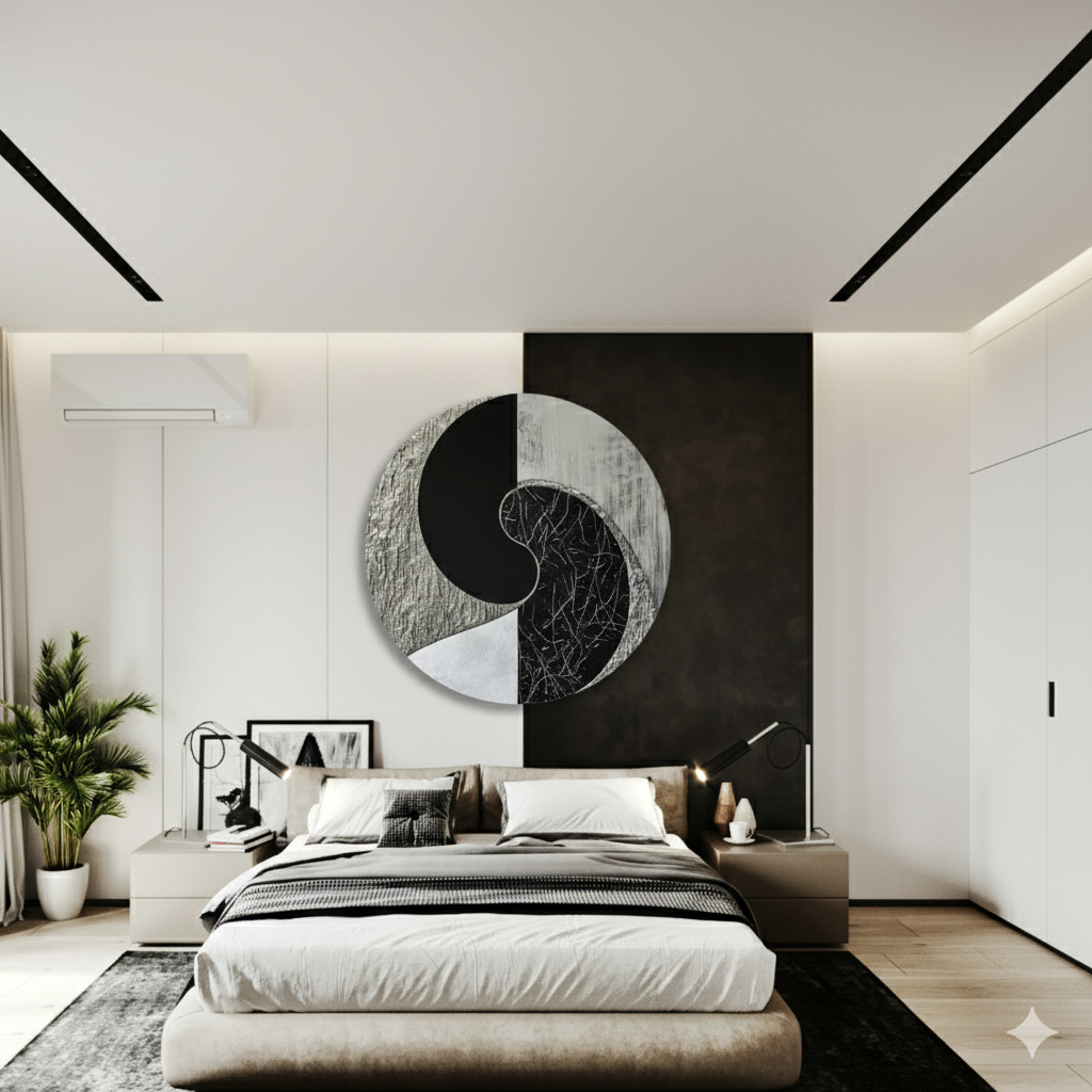 Šiuolaikiškas, bet tuo pačiu simbolinis – „Baltoji Pusiausvyra“ žaidžia kontrastais tarp šviesos ir tamsos, tvarkos ir chaoso. Ant balto aliuminio paviršiaus atspaustas švarus geometrinis dizainas su išraiškingomis faktūromis tampa išskirtiniu akcentu bet kuriame interjere.